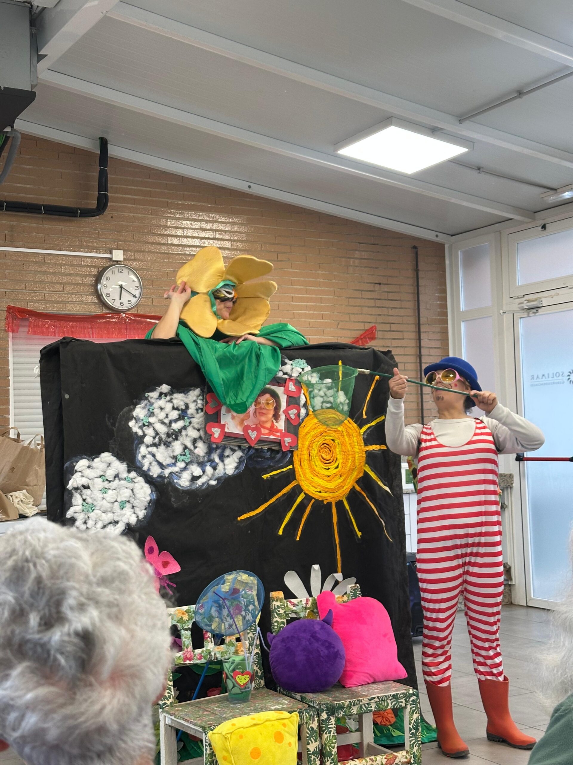 La puesta en escena incorporó música y canciones que acompañaron el desarrollo del cuento y favorecieron la participación de las personas residentes. La actividad finalizó con un momento festivo en el que residentes y actrices pudieron compartir un pequeño baile, cerrando la jornada en un ambiente alegre y participativo.